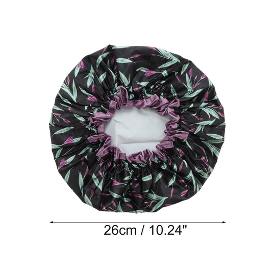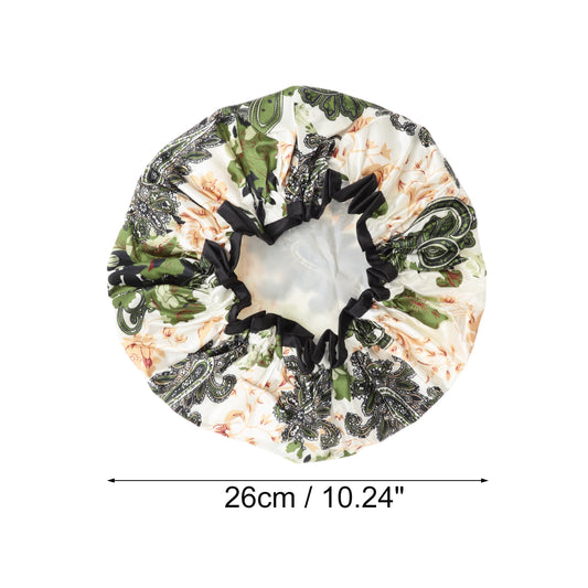 Women Double Layer Begonia Flowers Shower Cap for Bathroom Travel Green White