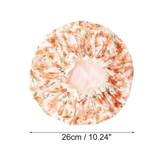 1 Pc Women Double Layer Pastoral Flowers Shower Cap for Bathroom Vacation Orange