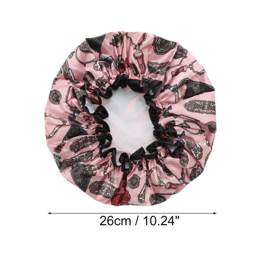 1 Pc Women Double Layer Accessories Pattern Shower Cap for Bathroom Travel Pink