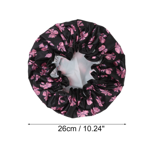 1 Pc Women Double Layer Bows Shower Cap for Bathroom Vacation Travel Black Pink