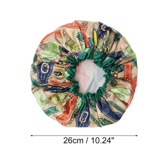 Women Double Layer Belt Pattern Shower Cap for Bathroom Travel Assorted Color
