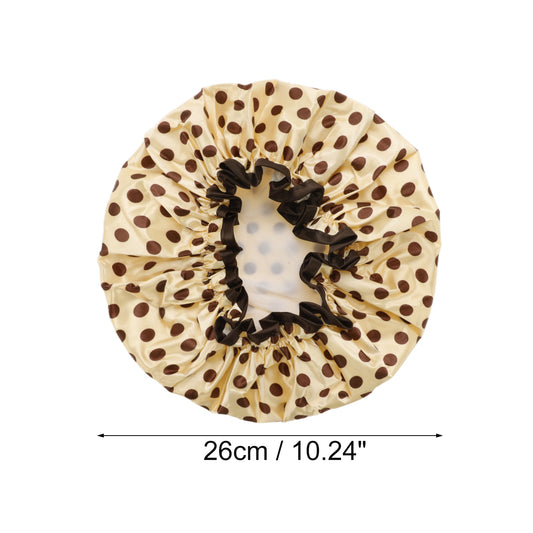 1 Pc Women Double Layer Large Dots Shower Cap for Bathroom Vacation Travel Brown