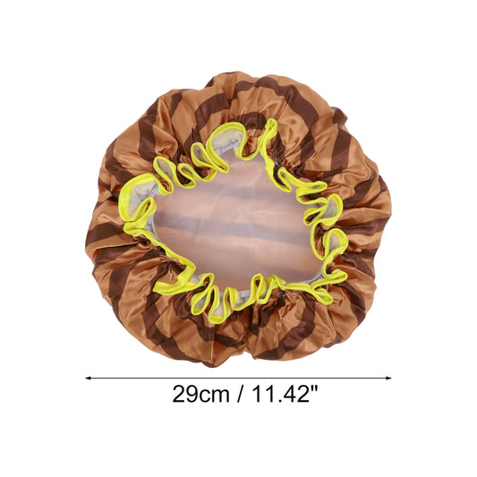 1 Pc Women Durable Stripe Shower Cap for Bathroom Vacation Travel Coffee Color
