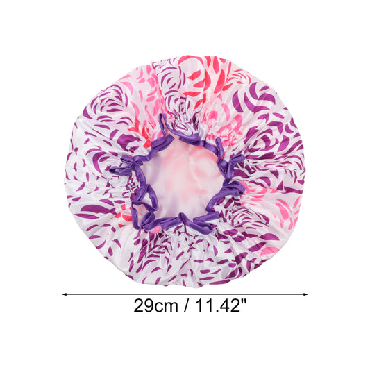 1 Pc Waterproof Stripe Shower Cap for Bathroom Vacation Hotel Travel Purple