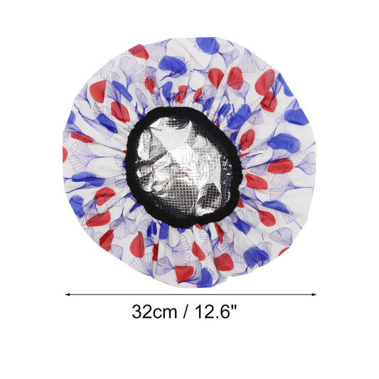1 Pc Women Durable Flowers Shower Cap for Bathroom Vacation Hotel Travel Red Blue