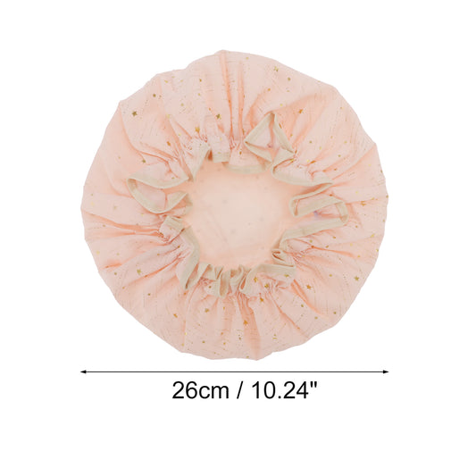 1 Pc Women Gold Stars Shower Cap for Bathroom Vacation Business Travel Pink