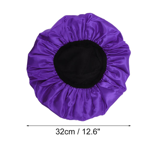 Women Durable Solid Color Shower Cap for Bathroom Vacation Hotel Travel Purple