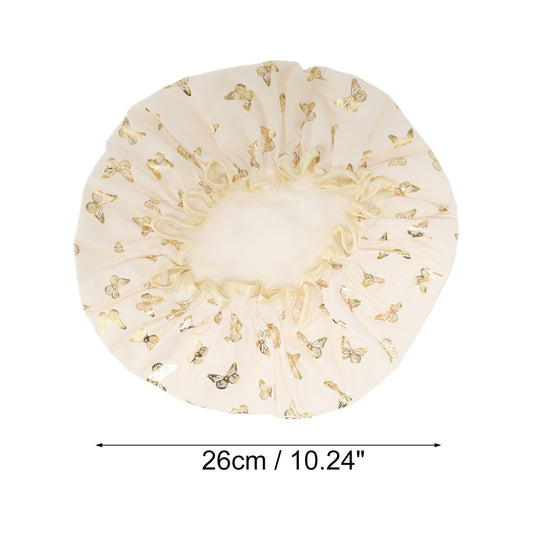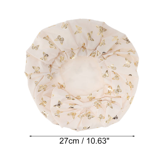 1 Pc Women Double Layer Gilded Butterfly Shower Cap for Bathroom Vacation Beige