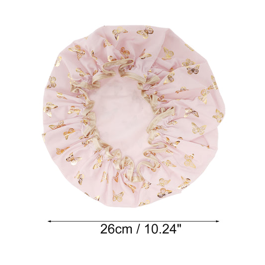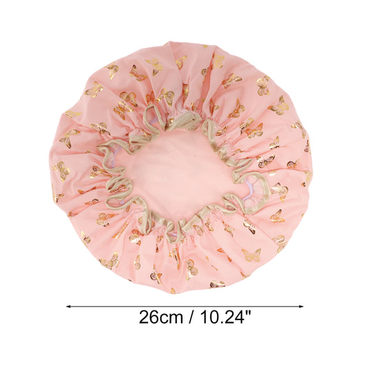 1 Pc Women Double Layer Gilded Butterfly Shower Cap for Bathroom Vacation Pink