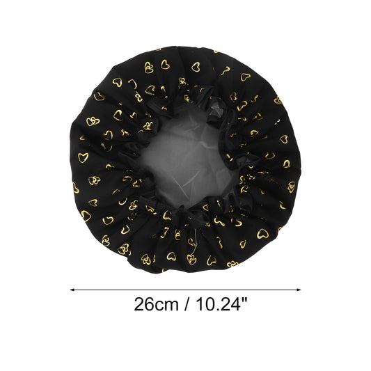 3 Pcs Women Gold Heart Shower Cap for Bathroom Vacation Business Travel Black