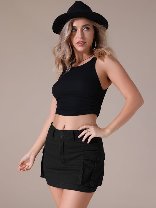 Falda vaquera mini elástica con bolsillos de solapa y botones para mujer