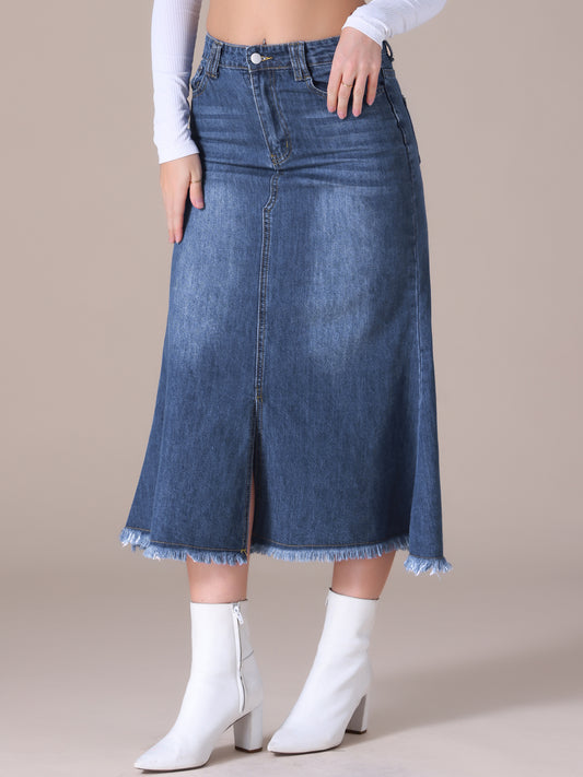 Falda vaquera larga de cintura alta con cola de pez y corte A para mujer con abertura