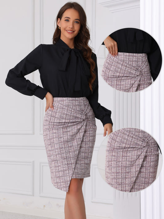 Falda tubo ajustada de tweed con cintura alta elástica y cruzada en la parte delantera para mujer