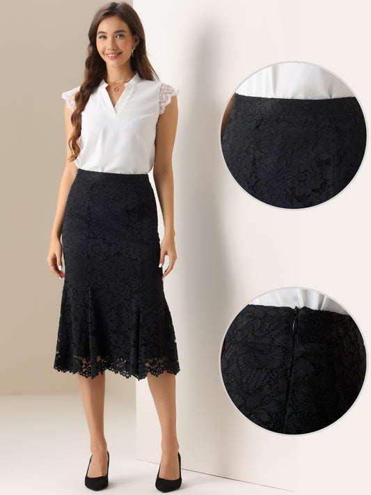 Faldas midi tubo de encaje con cola de pez y diseño ajustado para oficina de mujer
