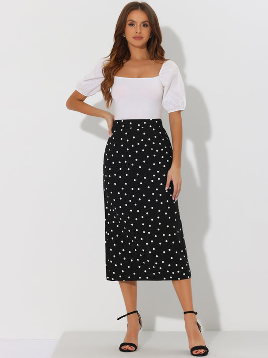 Falda de lunares de verano para mujer, informal, elástica, de cintura alta, corte A, midi