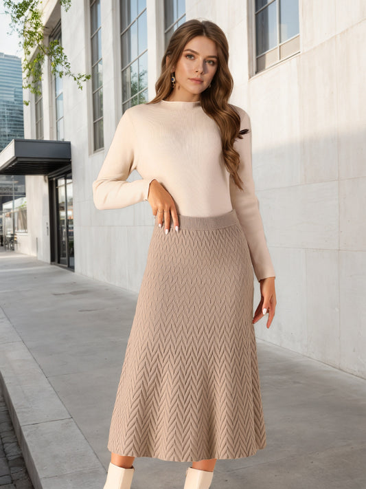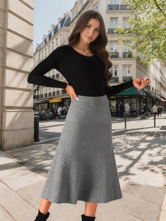 Faldas de punto acanalado para mujer, corte A, cintura alta elástica, estilo suéter, falda midi