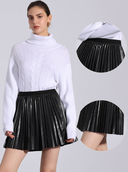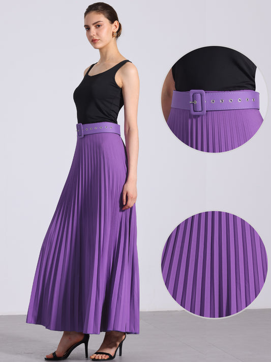 Falda larga plisada para mujer, cintura alta elástica con cinturón, corte A, para trabajo (disponible en tallas grandes)