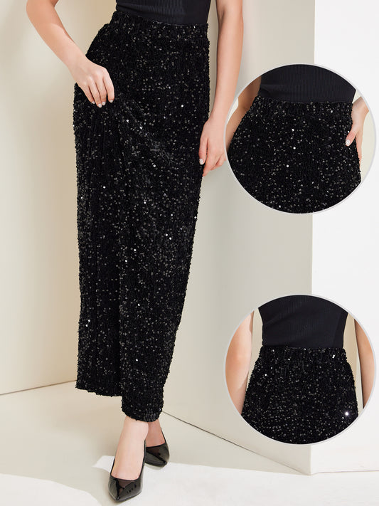 Falda larga de fiesta con lentejuelas y cintura elástica de terciopelo para mujer