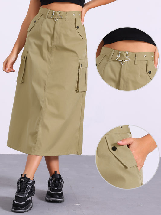 Falda larga recta de cintura alta con cremallera y bolsillos para mujer