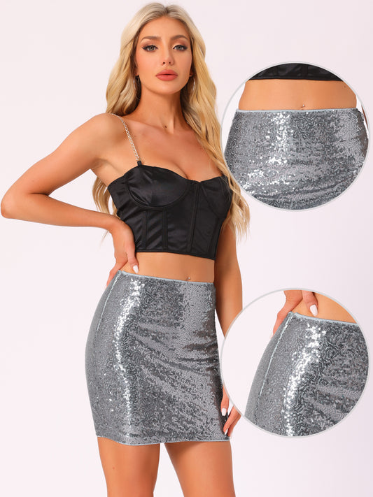 Minifalda ceñida con lentejuelas brillantes para mujer, ideal para fiestas nocturnas