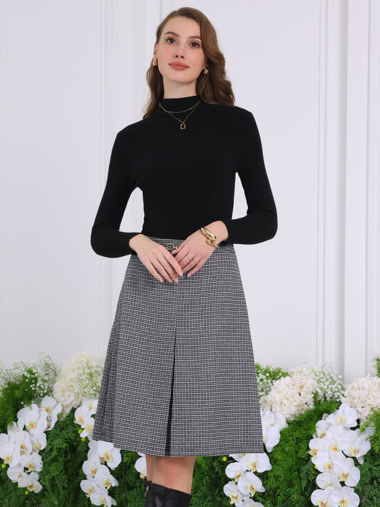 Falda de oficina a cuadros escoceses de cintura alta hasta la rodilla para mujer