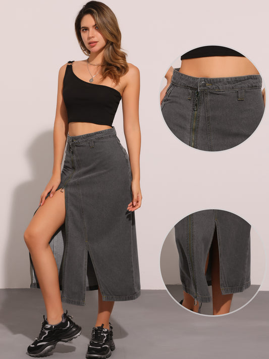 Faldas largas de mezclilla con cremallera frontal y bolsillos para mujer