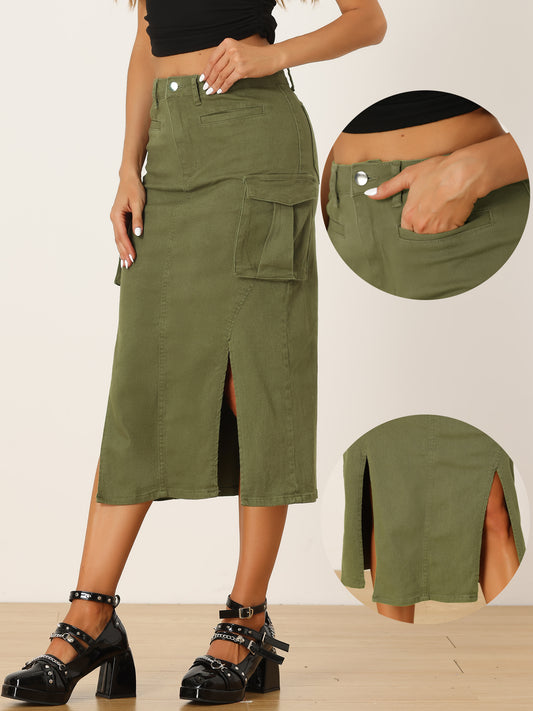 Falda vaquera larga cargo midi de corte A ajustable para mujer