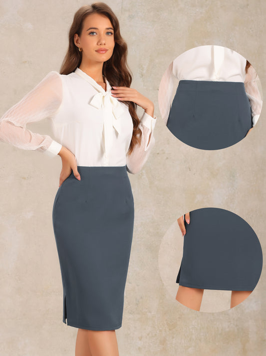 Traje ajustado de cintura alta hasta la rodilla para mujer, ideal para trabajar, con falda tubo