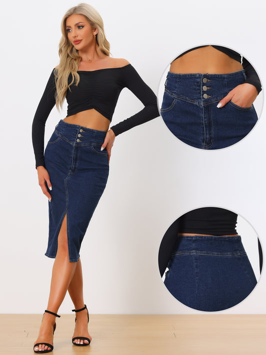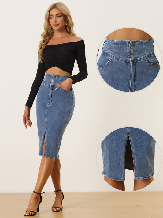 Falda vaquera informal para mujer, cintura alta, dobladillo dividido, tubo, falda midi vaquera
