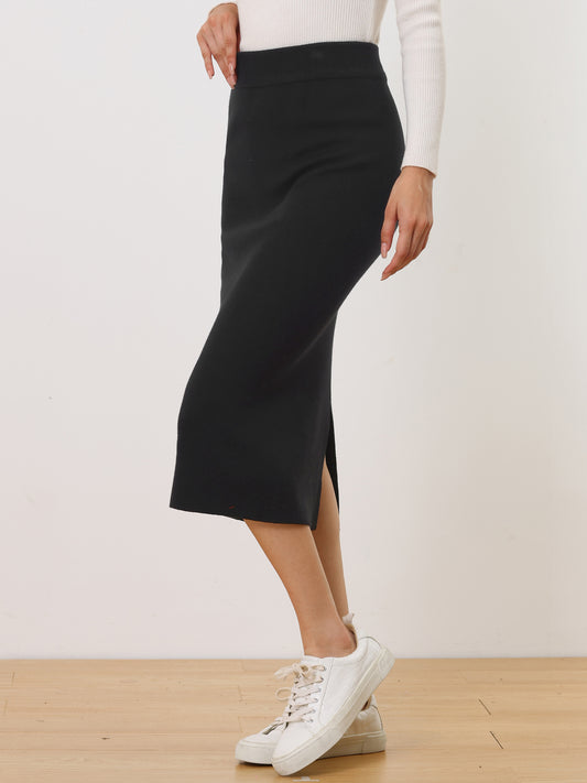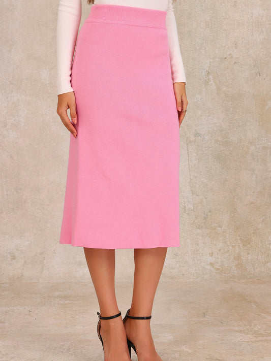 Falda ajustada de mujer, cintura alta, punto acanalado elástico, dobladillo dividido, abertura, suéter, falda lápiz