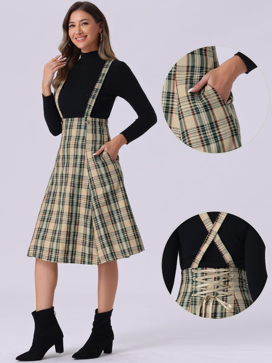 Vestido de mujer con tirantes y falda a cuadros escoceses