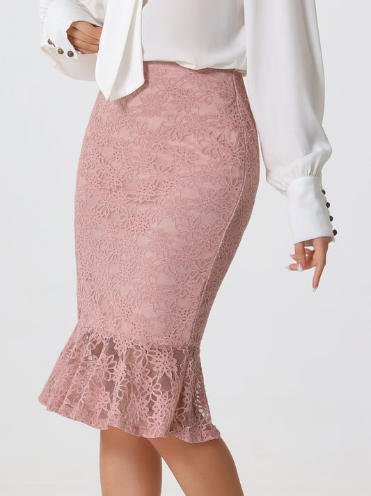 Falda tubo de encaje con cola de pez, elegante, hasta la rodilla, para mujer