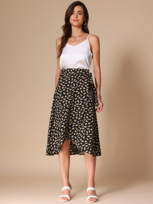 Falda midi cruzada con estampado floral y abertura frontal con lazo para mujer