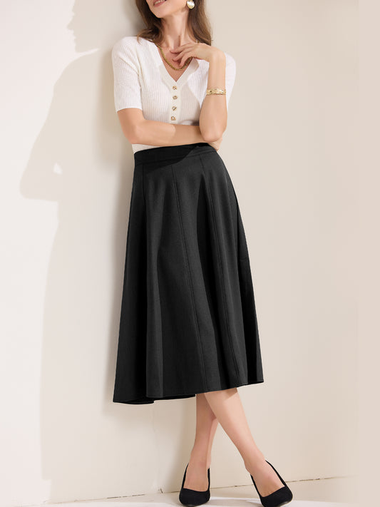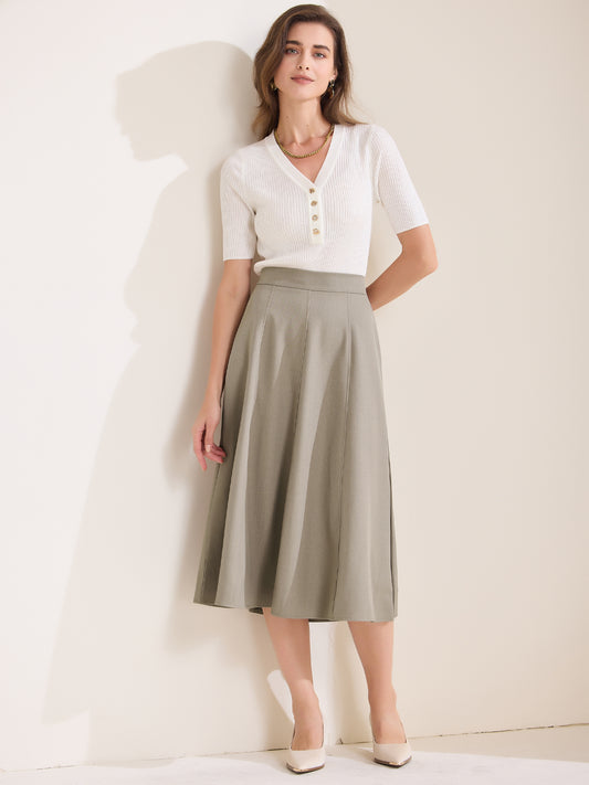 Falda plisada acampanada midi de cintura alta para oficina para mujer