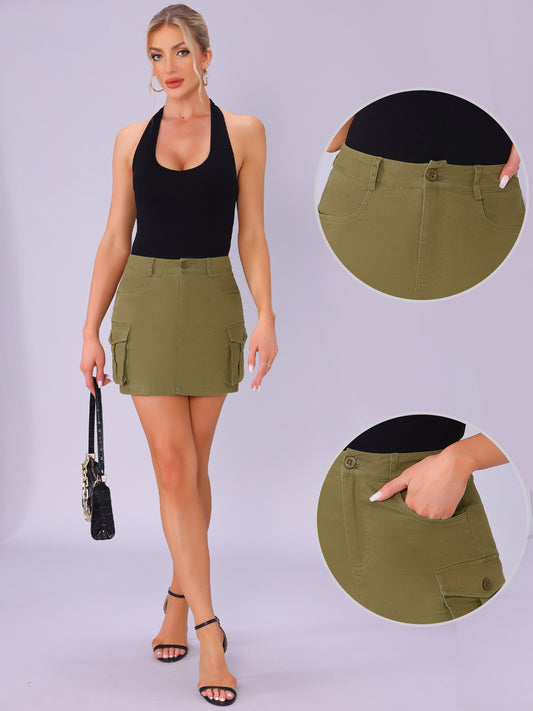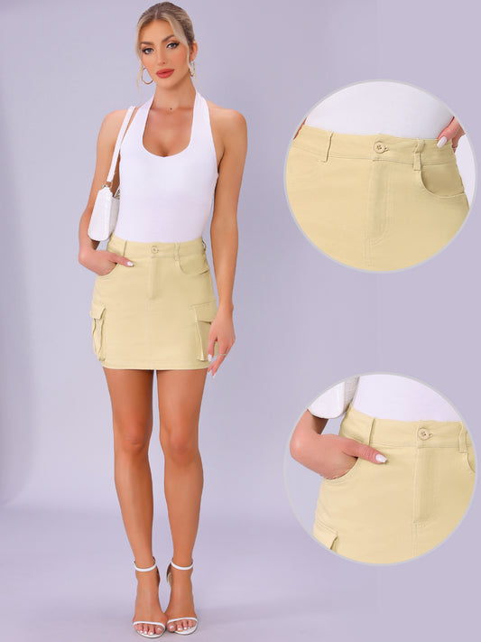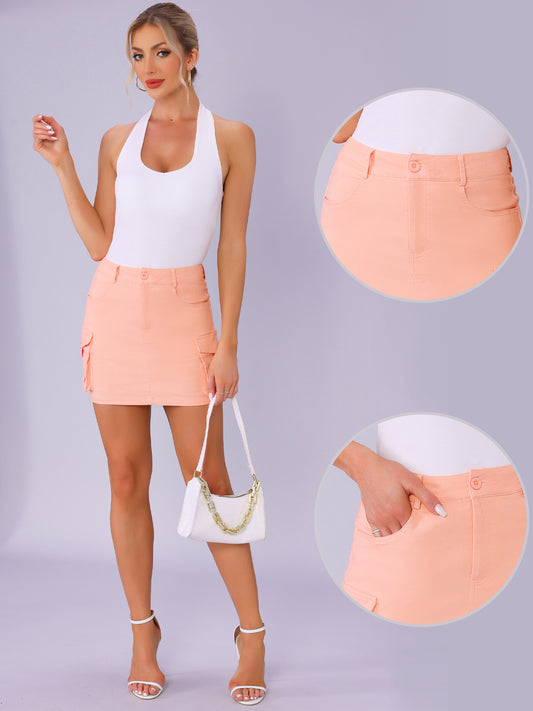 Minifalda cargo vaquera elástica de cintura baja de mezcla de algodón para mujer