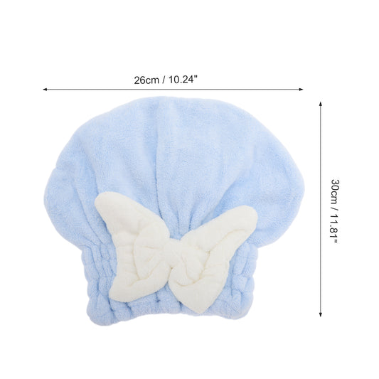 1 Pc Water-absorbent Bow Hair Drying Towel Hair Cap for Bathroom Blue
