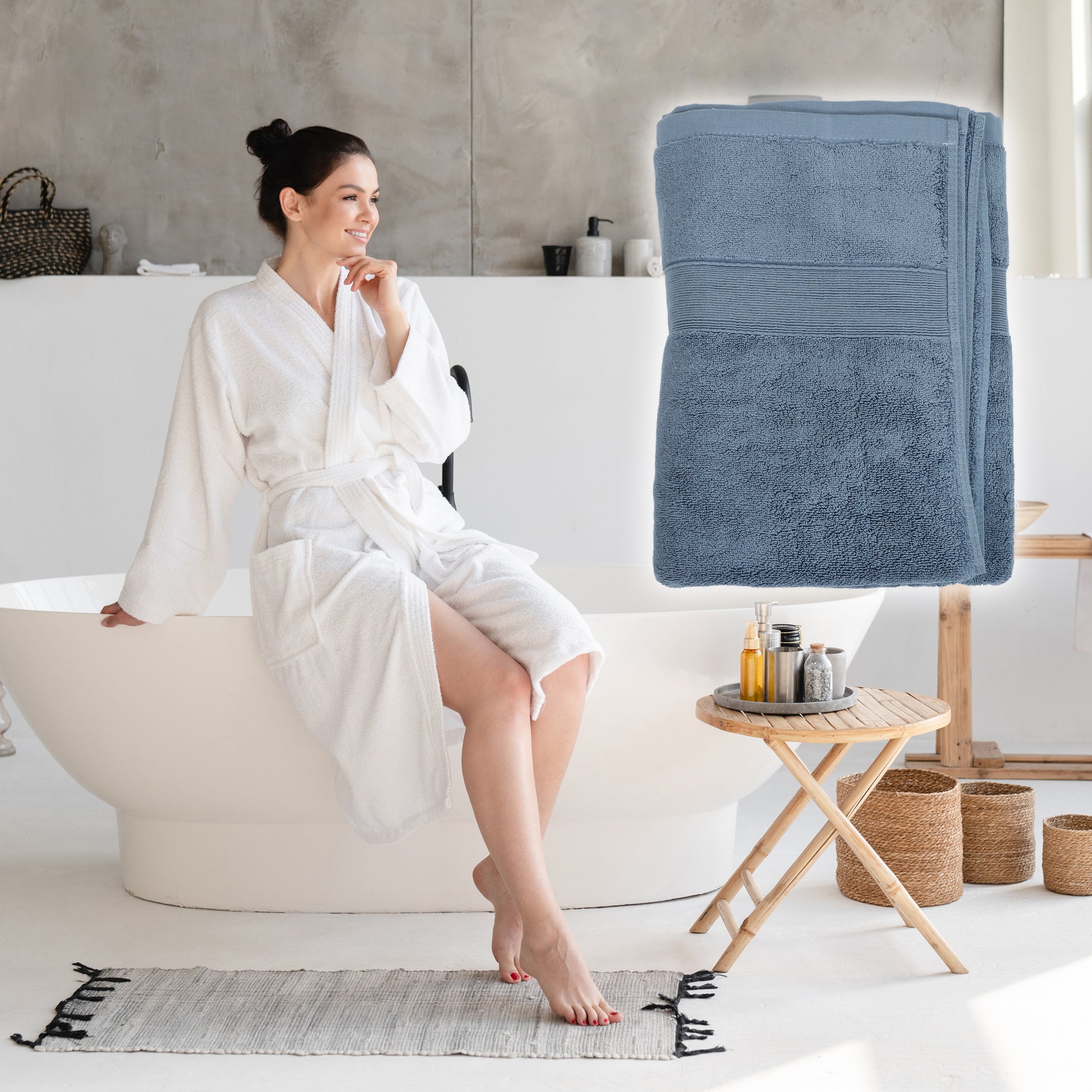 Toalla de baño de algodón absorbente suave y lisa, color azul, 70 x 140 cm