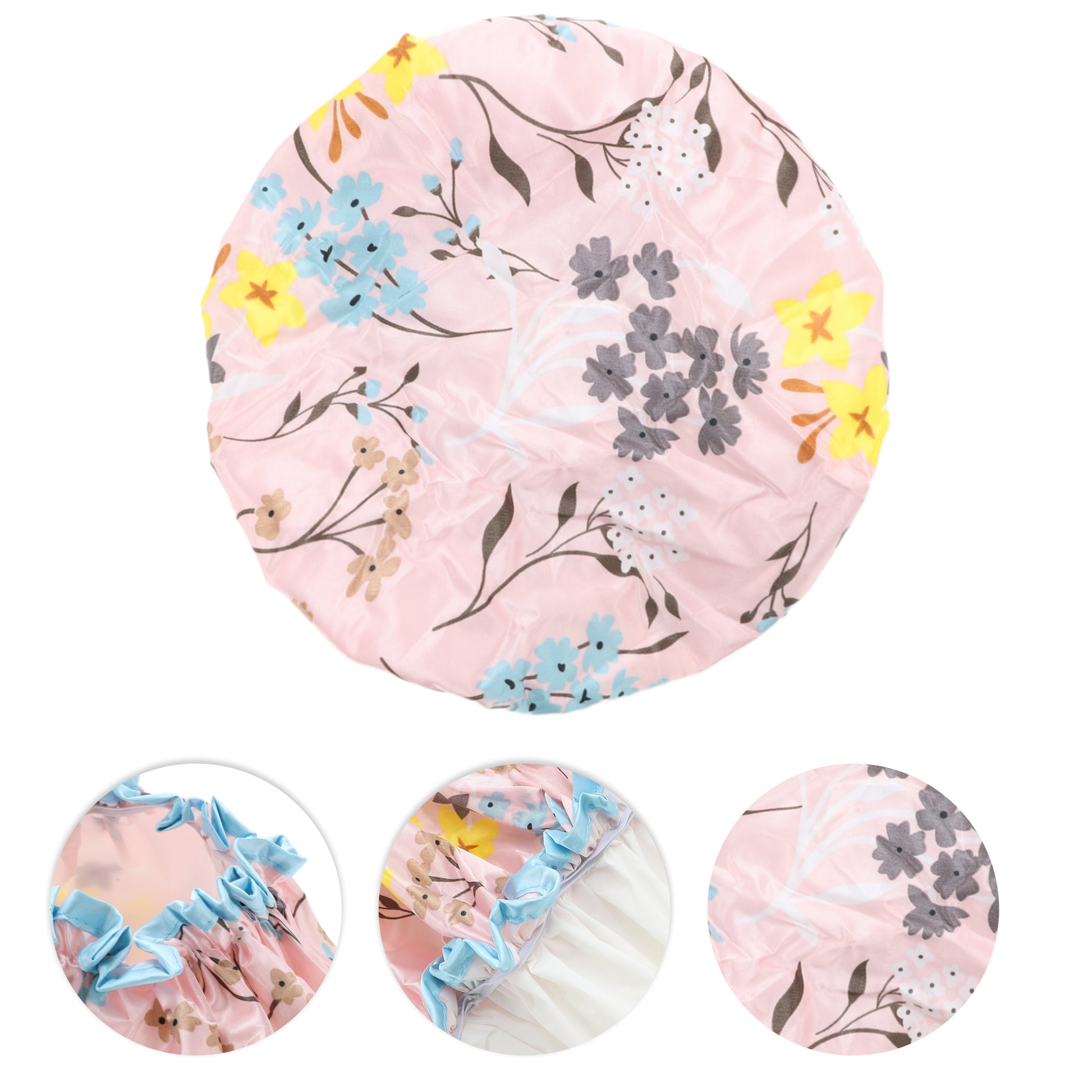 1 Pc Women Double Layer Flowers Shower Cap for Bathroom Vacation Travel Pink