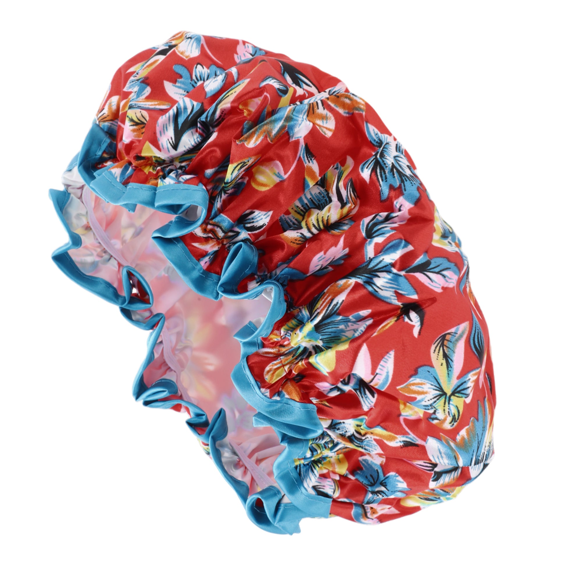 1 Pc Women Double Layer Flowers Shower Cap for Bathroom Vacation Travel Red