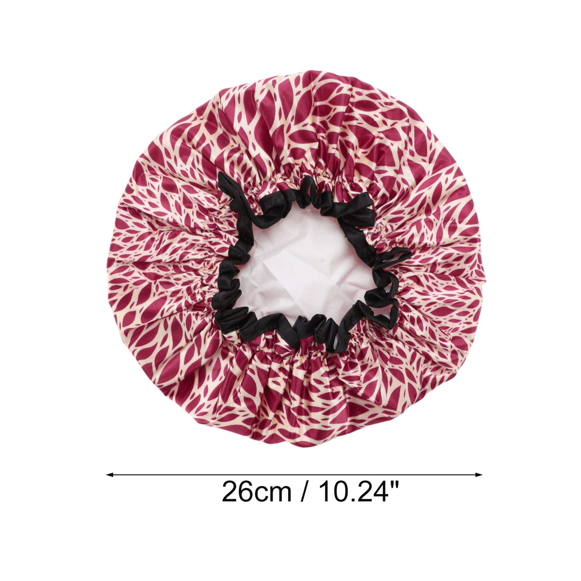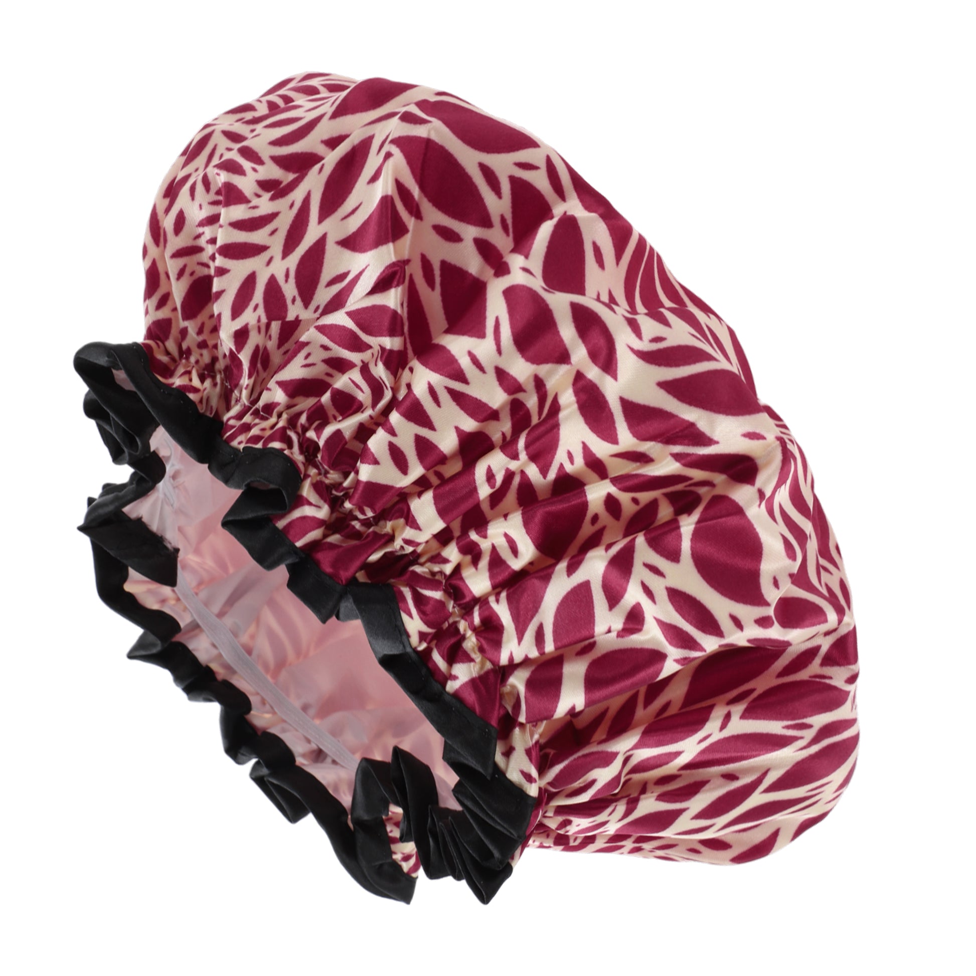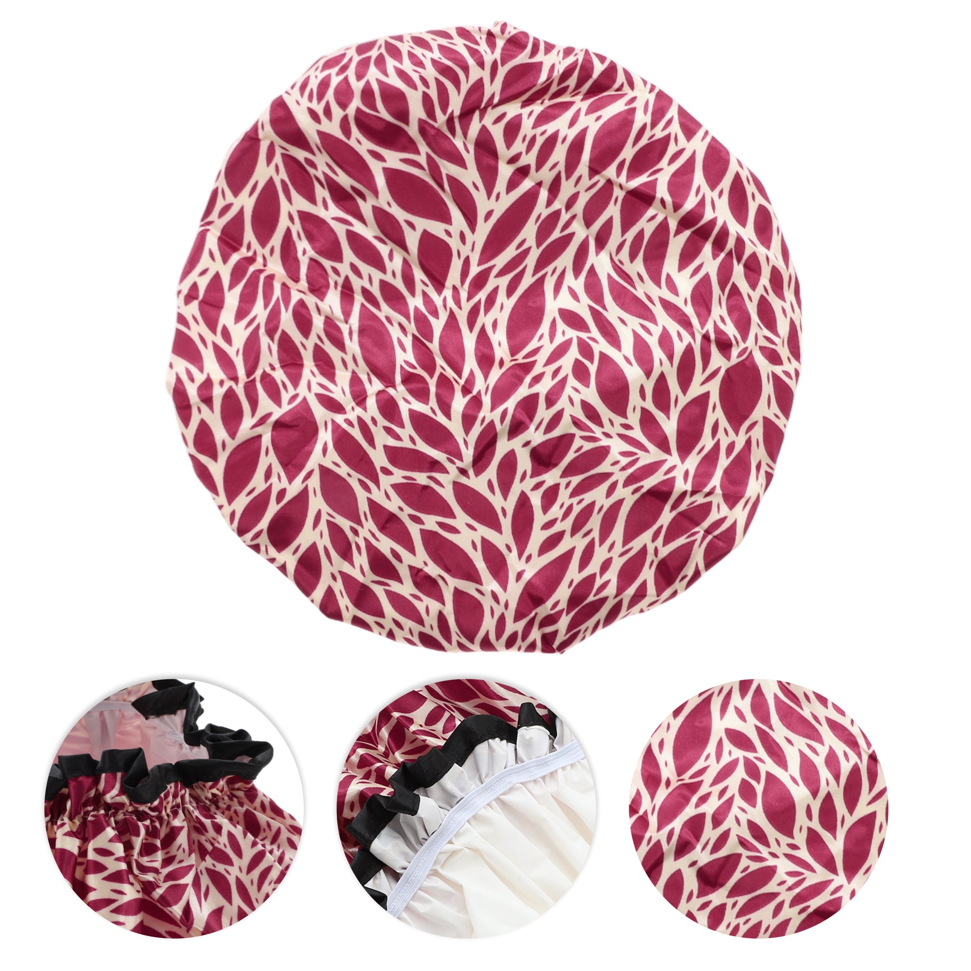 1 Pc Women Double Layer Leaves Shower Cap for Bathroom Vacation Travel Red