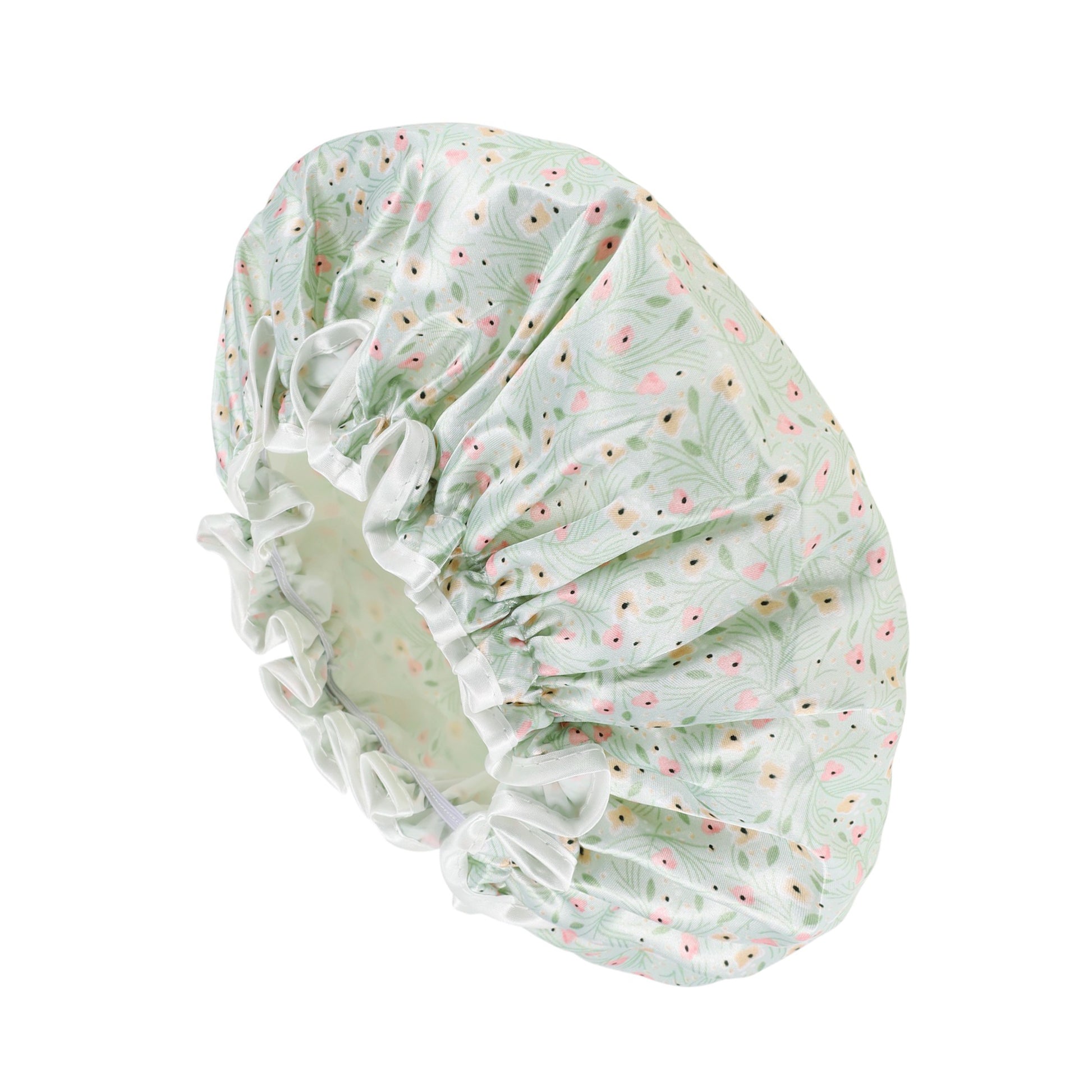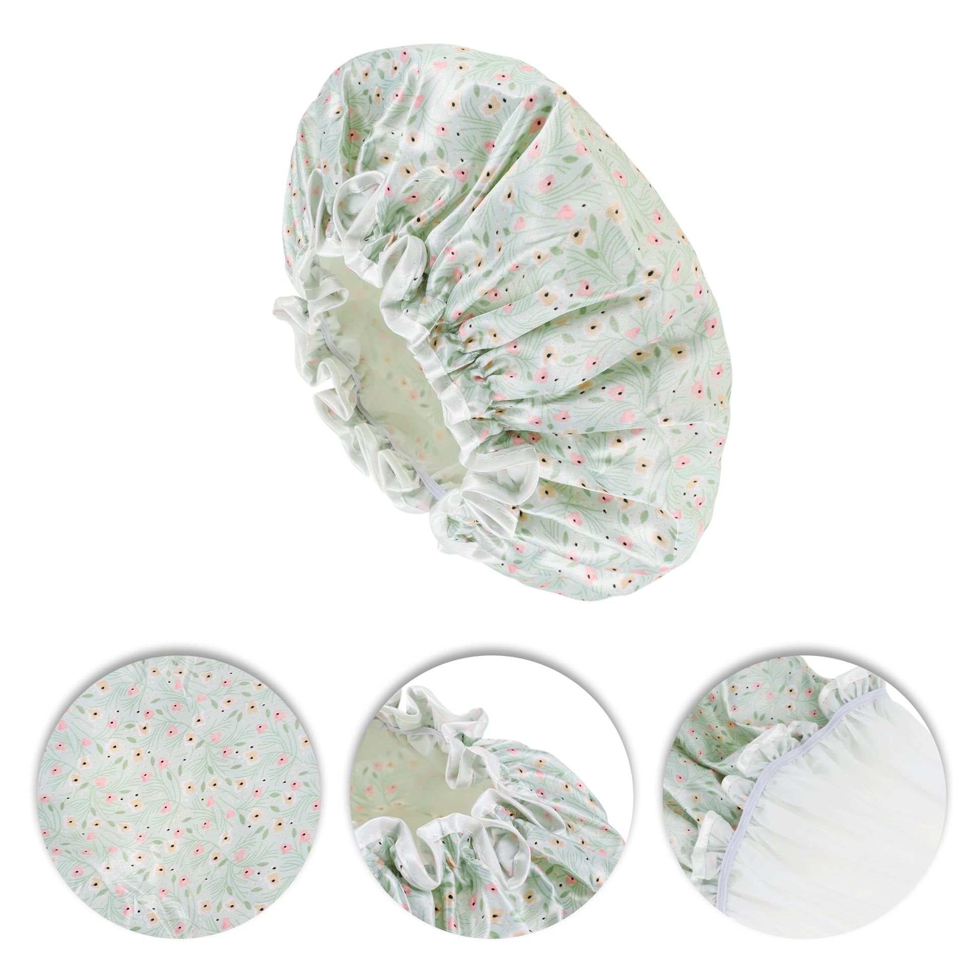 1 Pc Women Flower Bath Cap Shower Cap for Bathroom Green