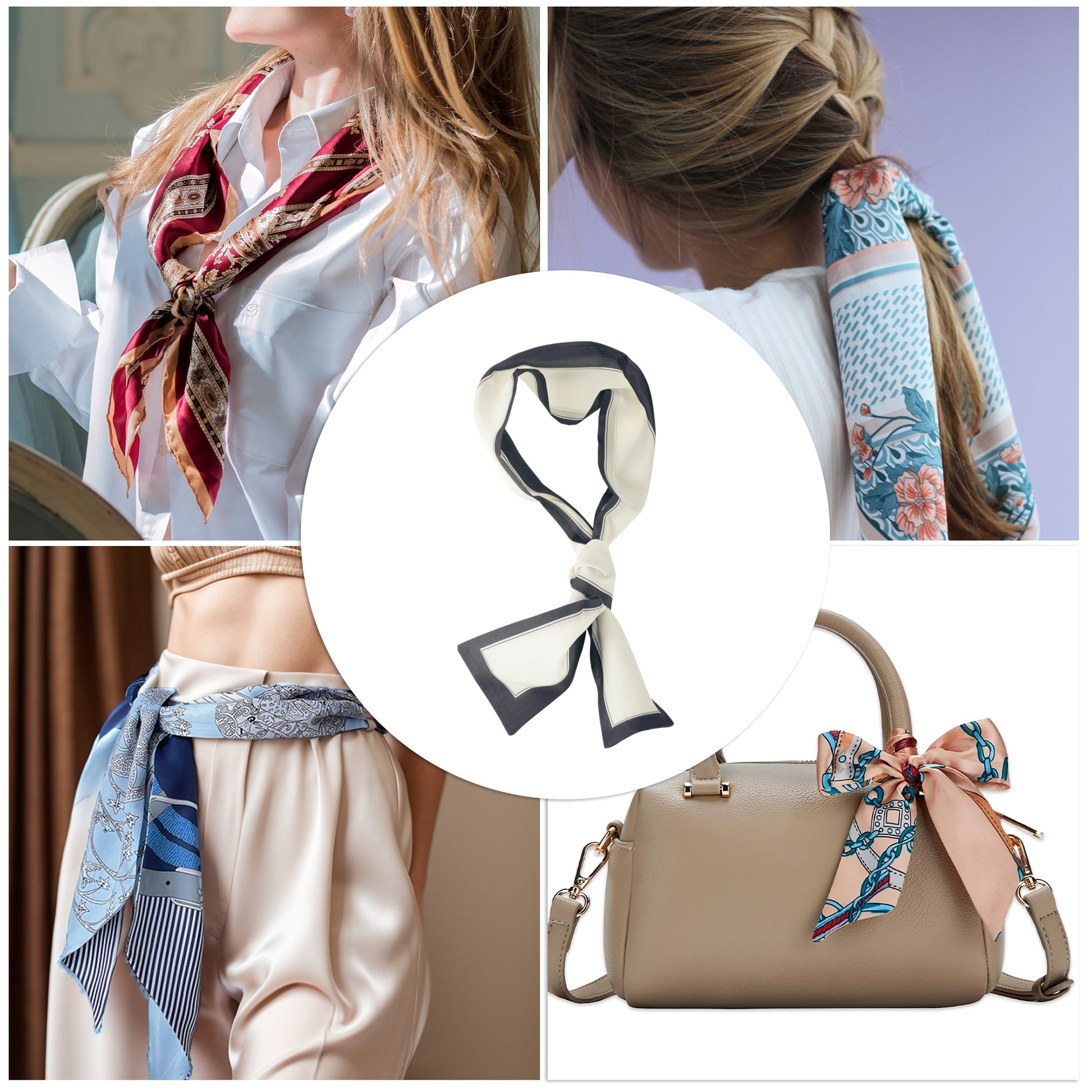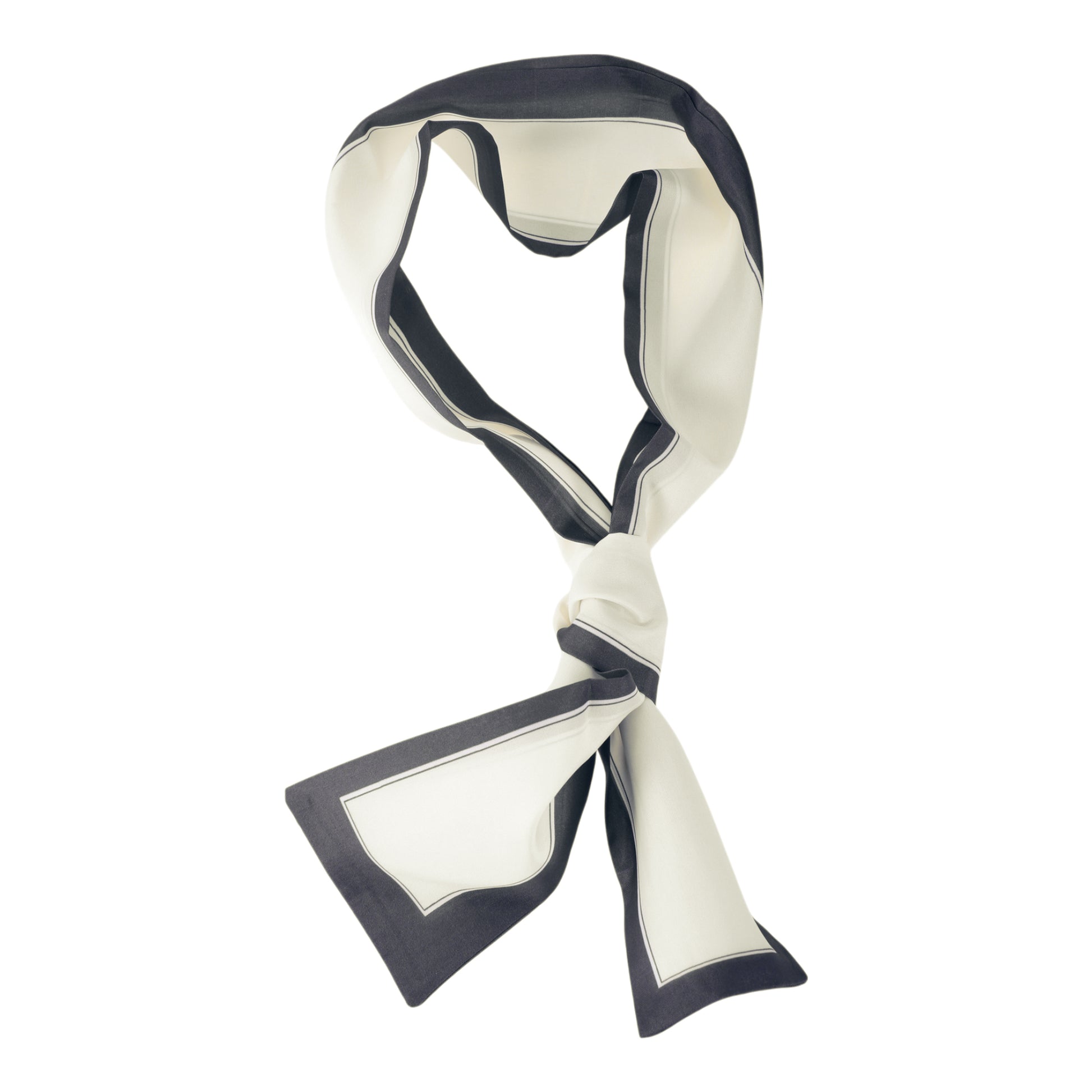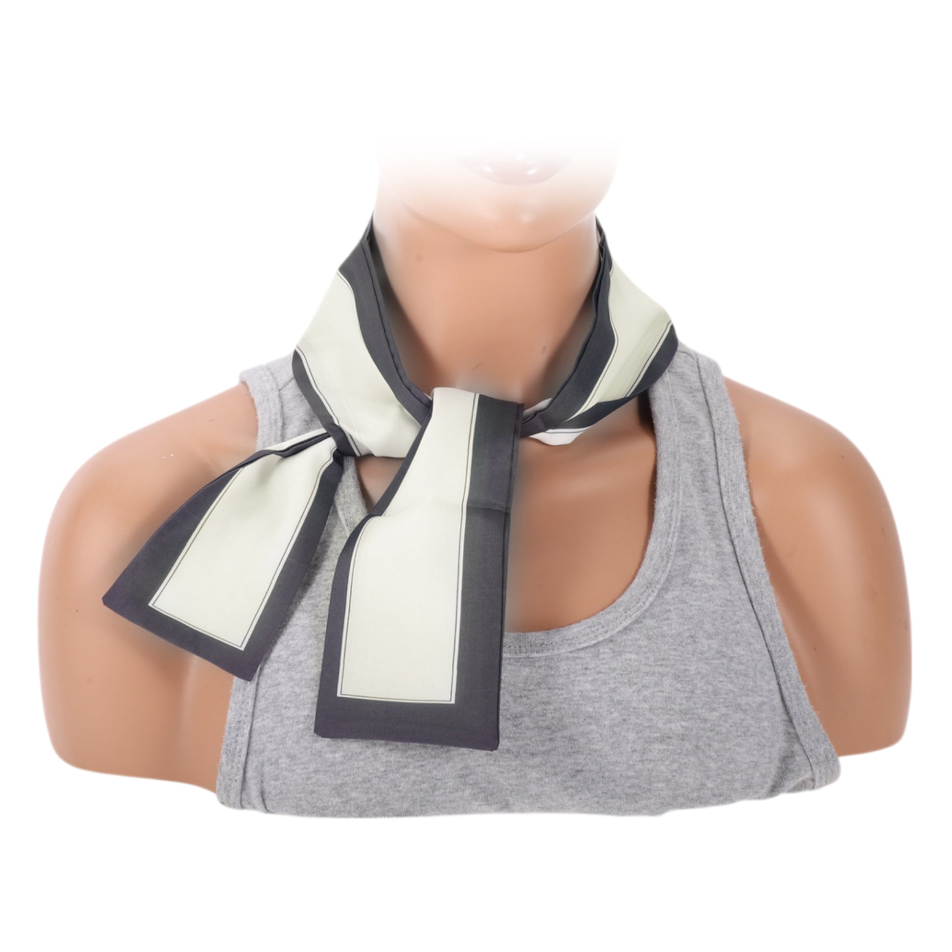 Pañuelo para el cuello con bloques de color y ribete en contraste para mujer, color blanco y negro, 1 unidad