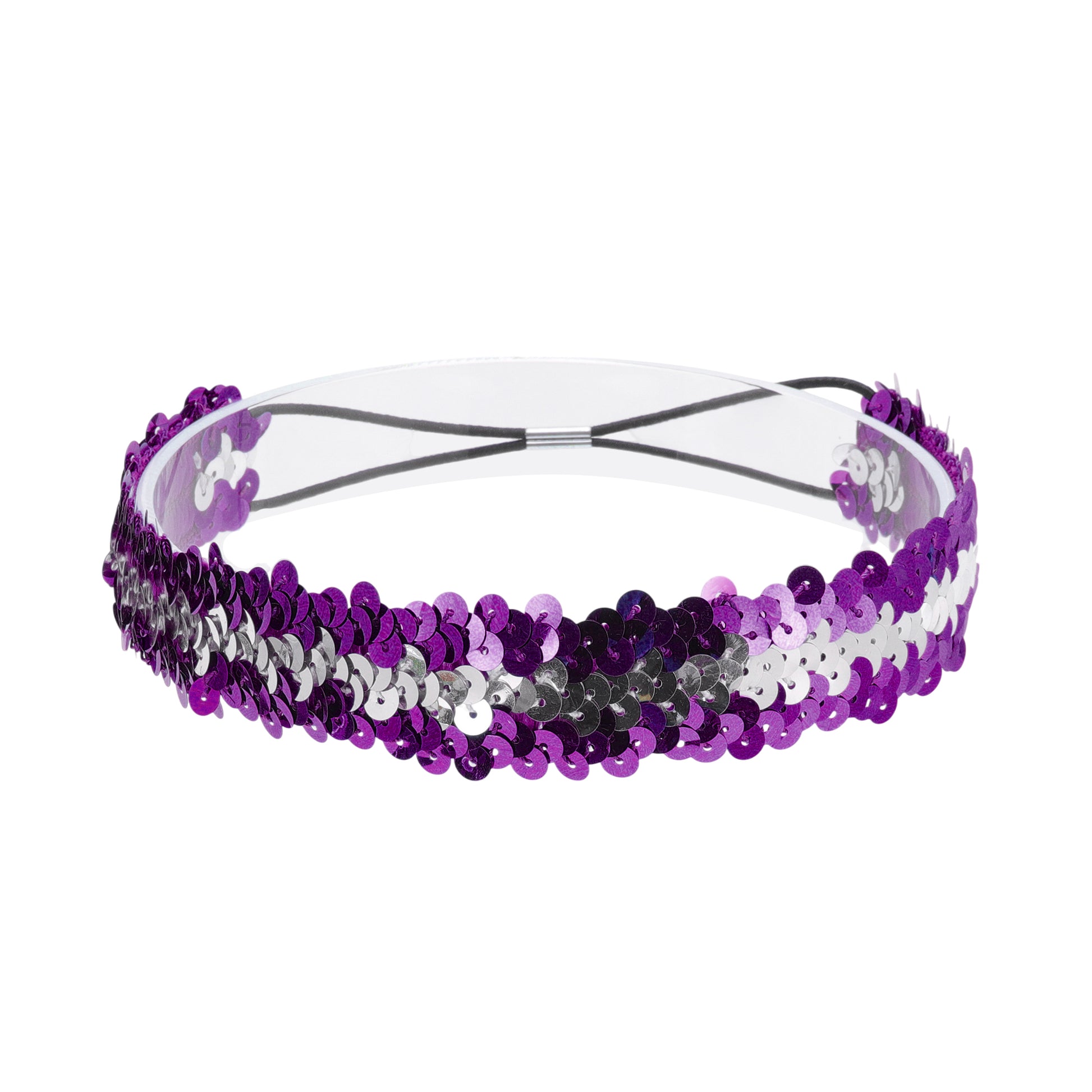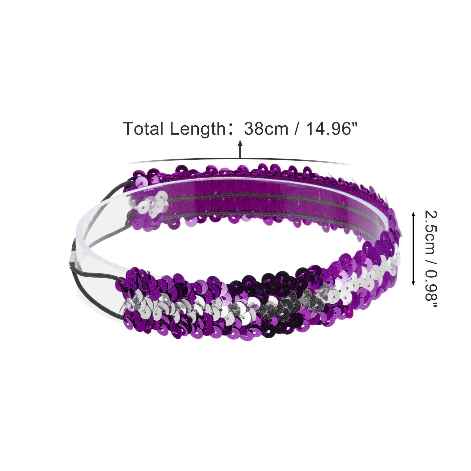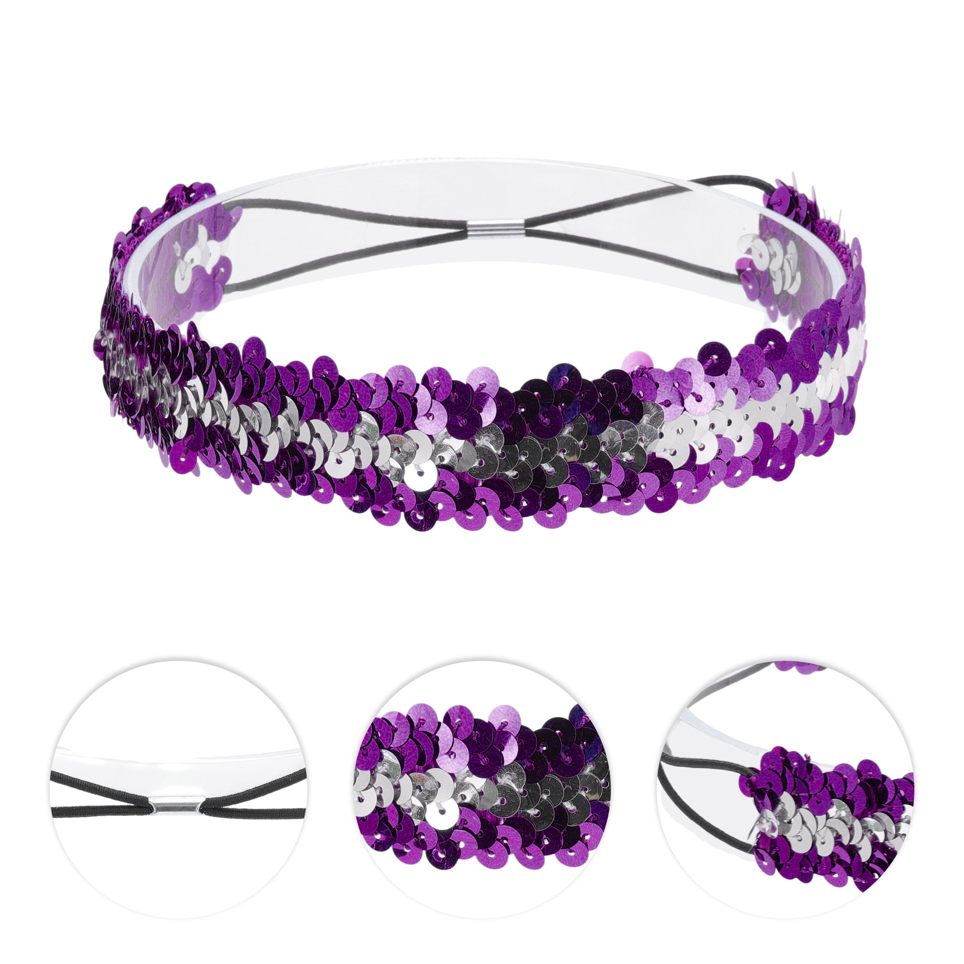 Diademas elásticas con lentejuelas para mujer, color morado y plateado, 1 unidad