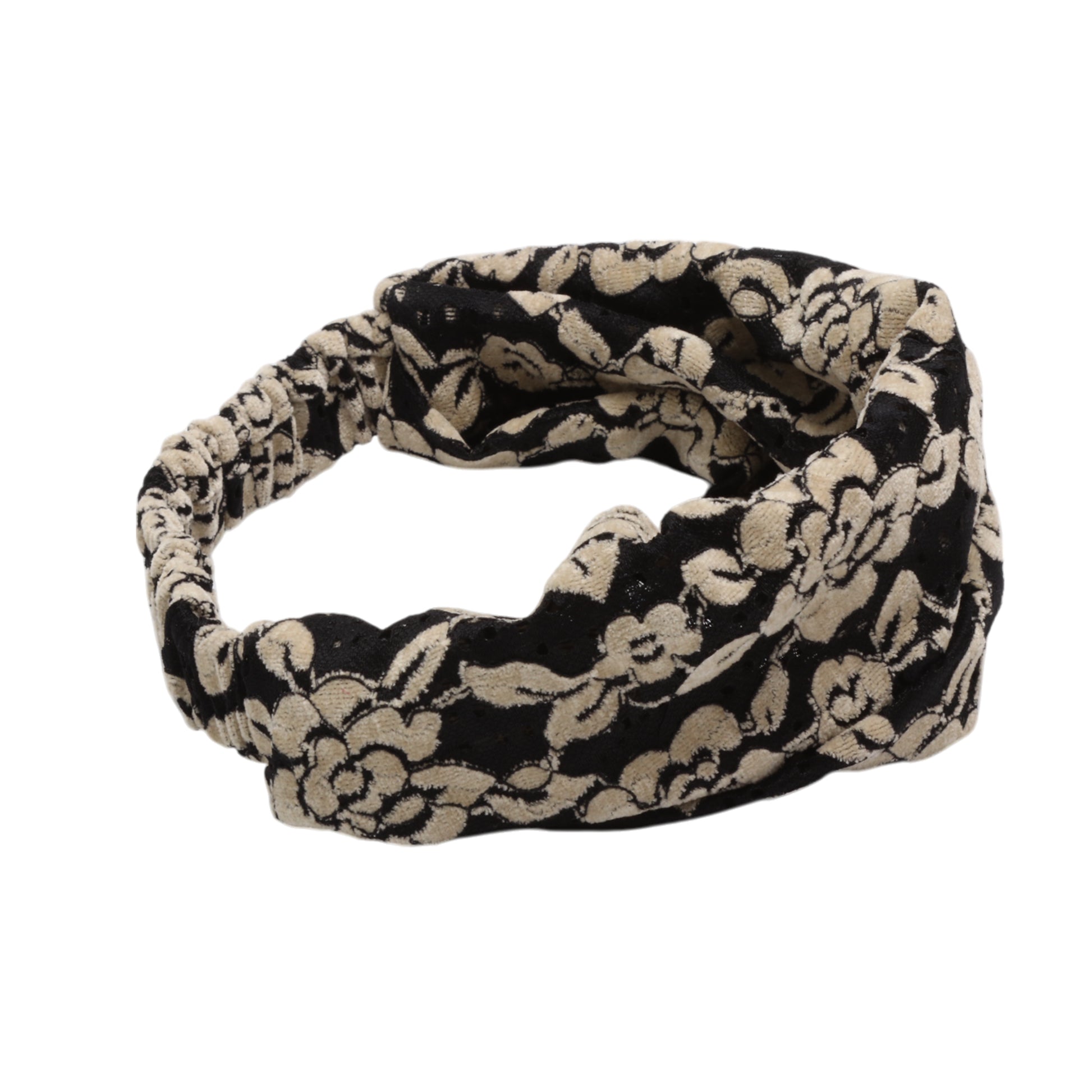 Diadema ancha de tela con rosas vintage, color negro, 1 unidad