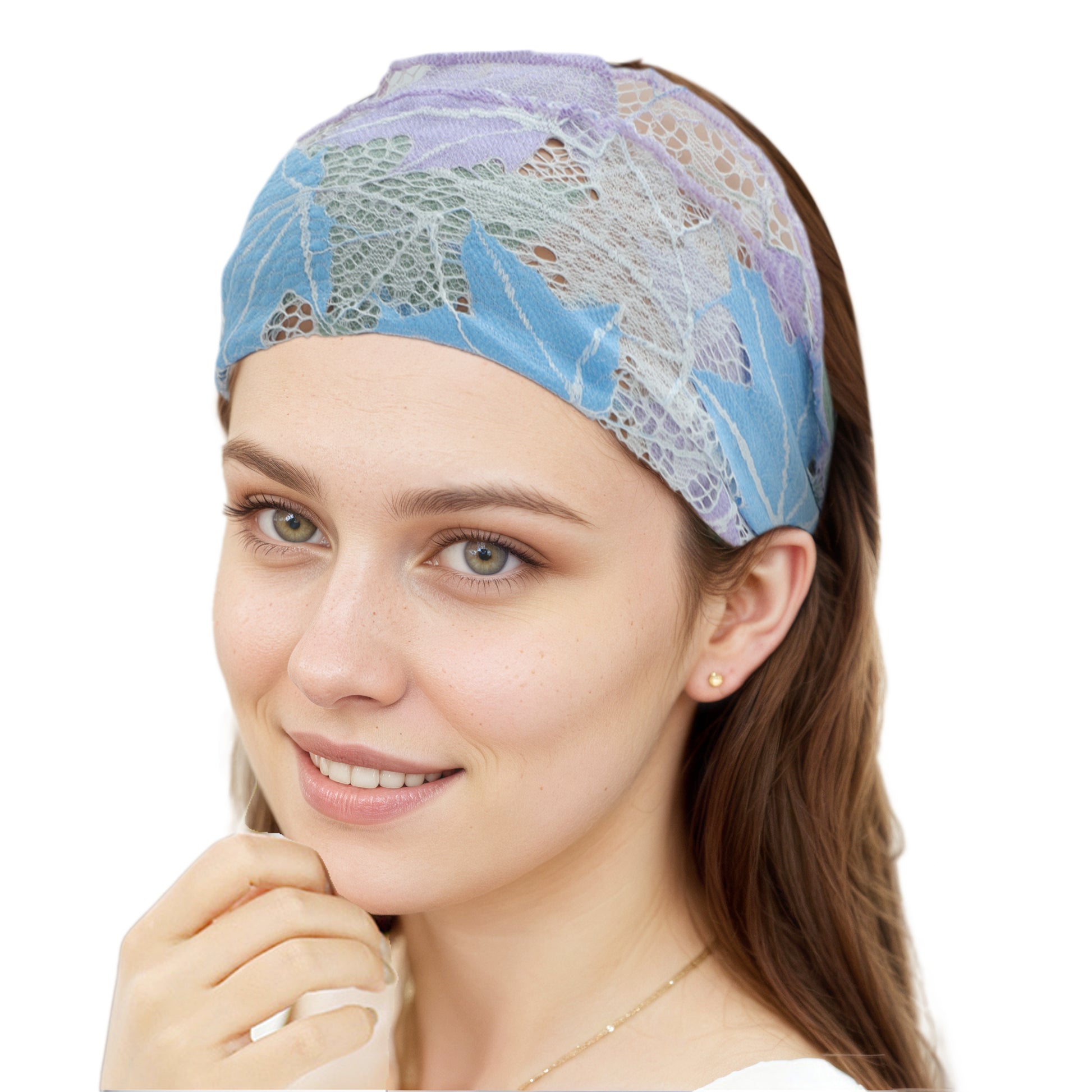 Diadema ancha de encaje con hojas de arce para mujer, color azul cielo y morado, 1 unidad