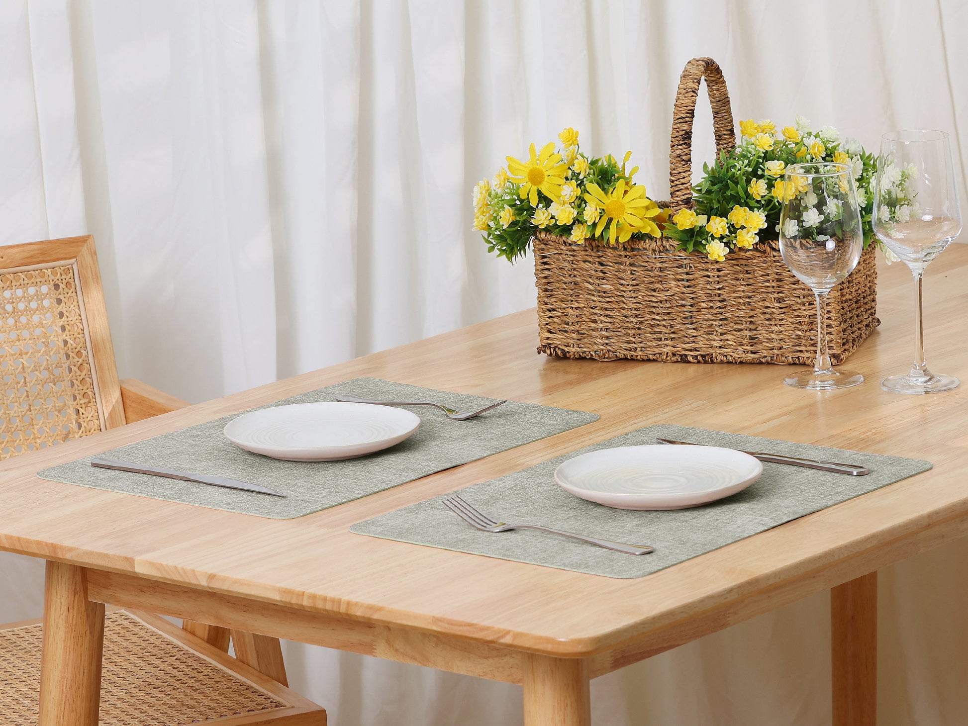 - Material: Los manteles individuales de mesa están hechos de cuero sintético, que es resistente y duradero.