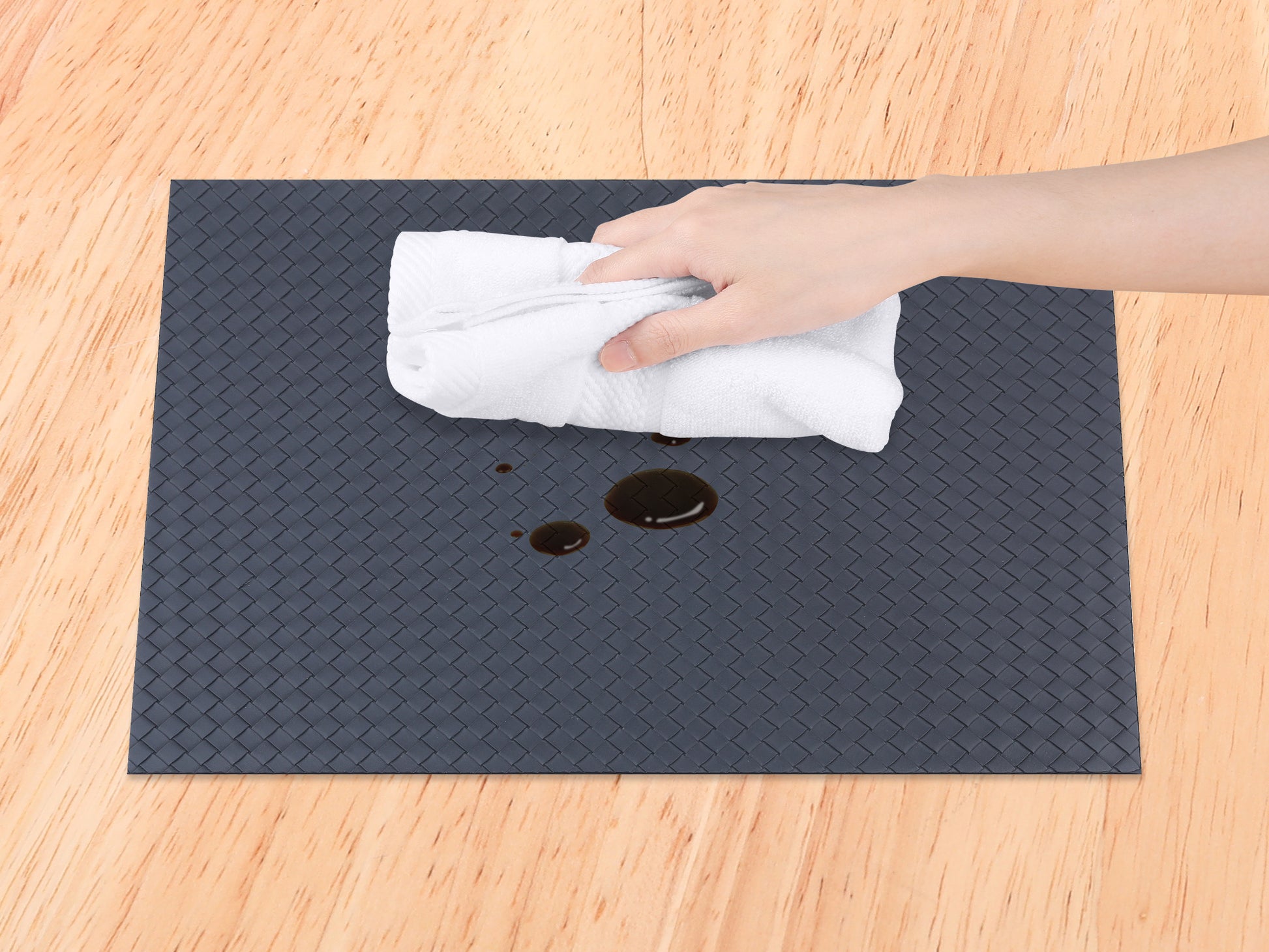 - Estos manteles individuales se pueden usar simplemente limpiándolos con un paño húmedo o una toalla cuando haya residuos, lo que mejorará su experiencia gastronómica.