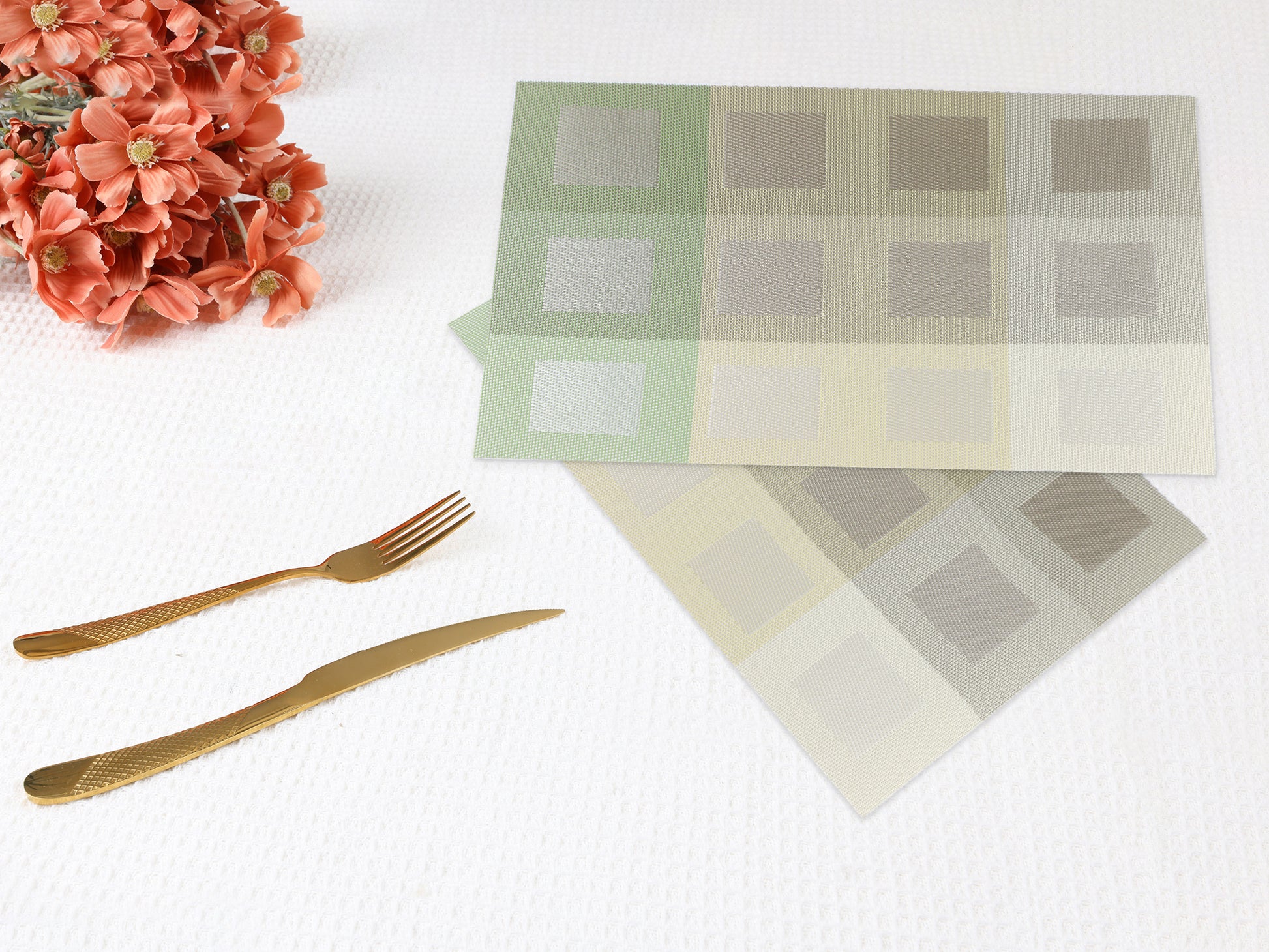 - Material: El mantel individual está hecho de PVC, un material suave y resistente a las arrugas. Garantiza una excelente calidad y durabilidad, protegiendo eficazmente la superficie de la mesa.