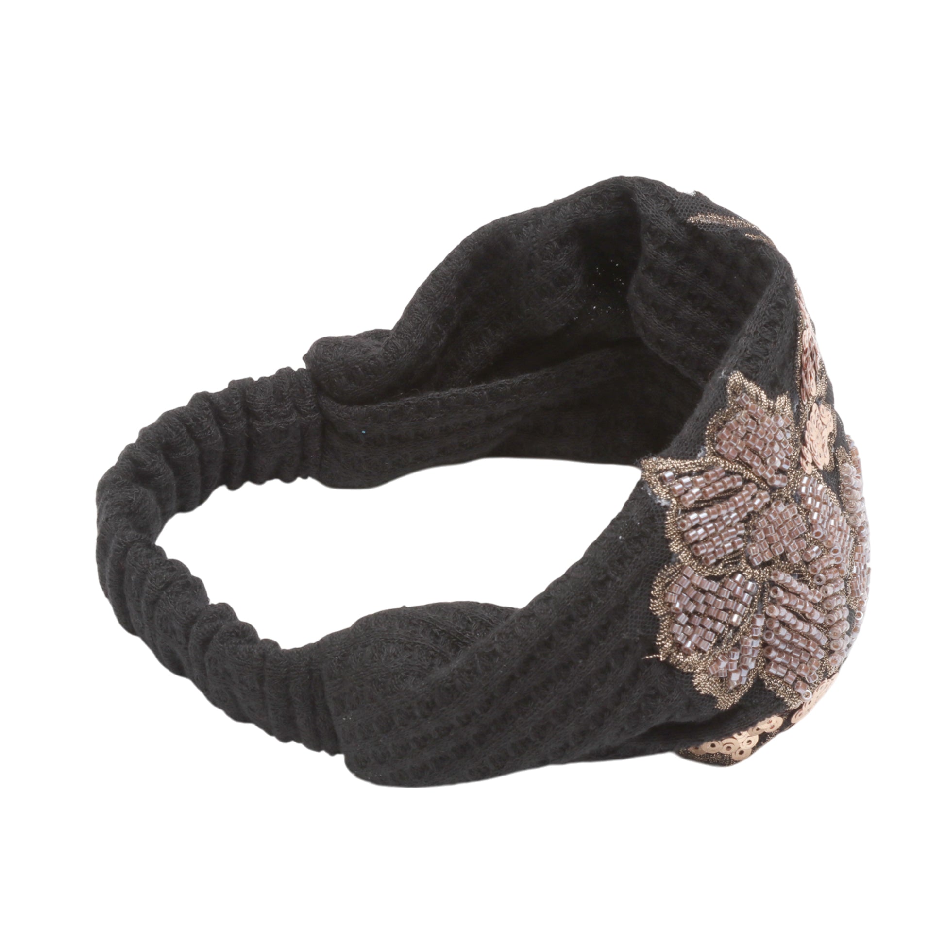 Diadema ancha con estampado de rosas para mujer, tono dorado y negro, 1 pieza