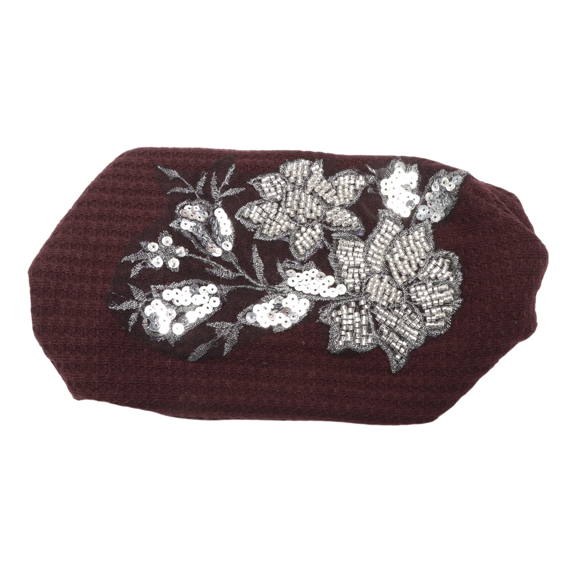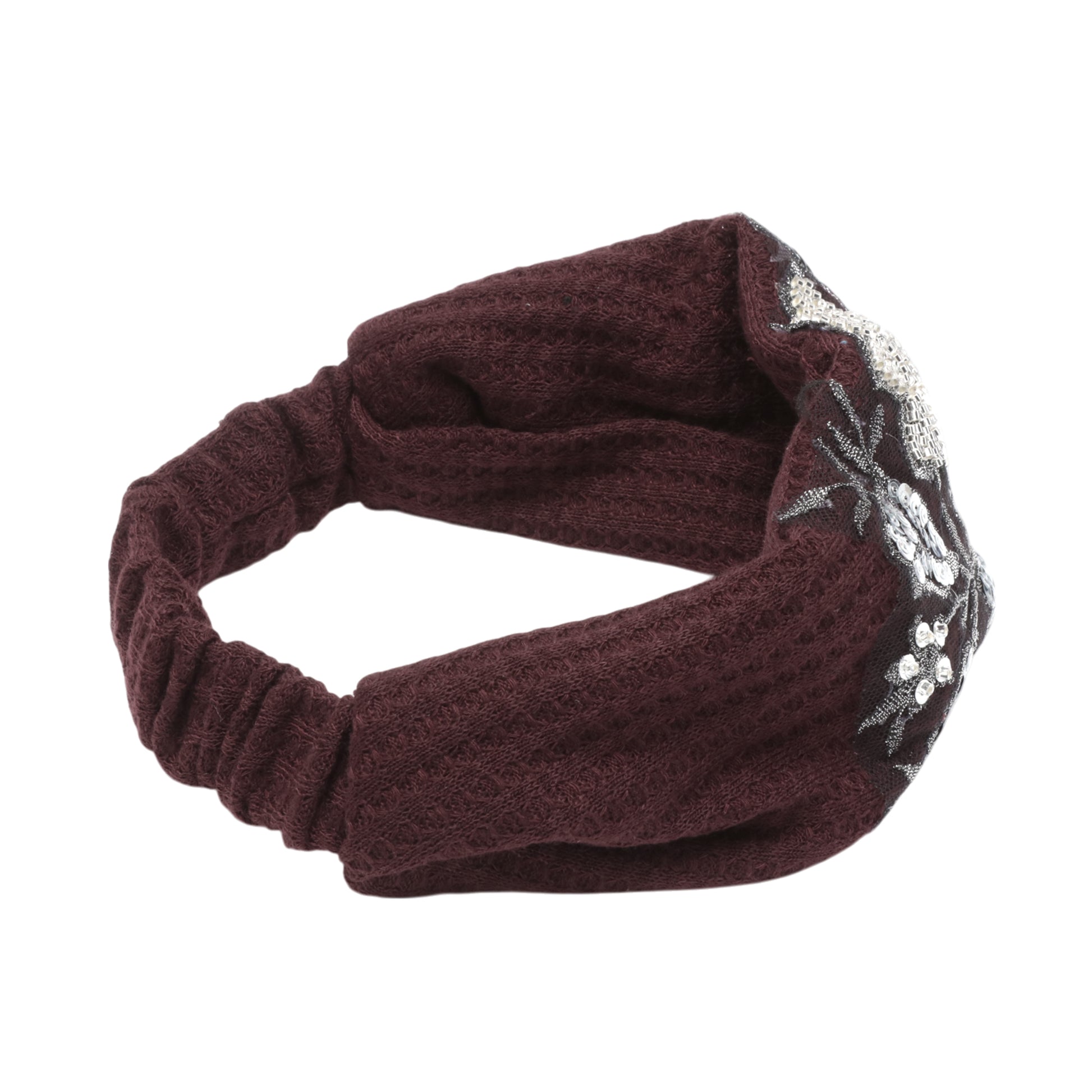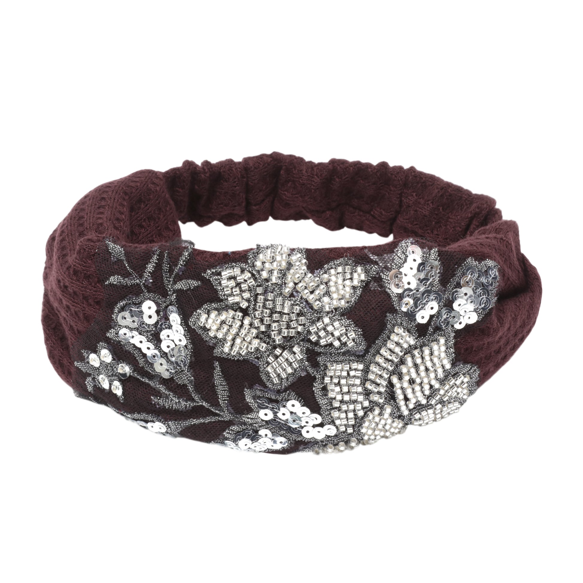 Diadema ancha con estampado de flores de rosa para mujer, tono rojo oscuro y plateado, 1 pieza